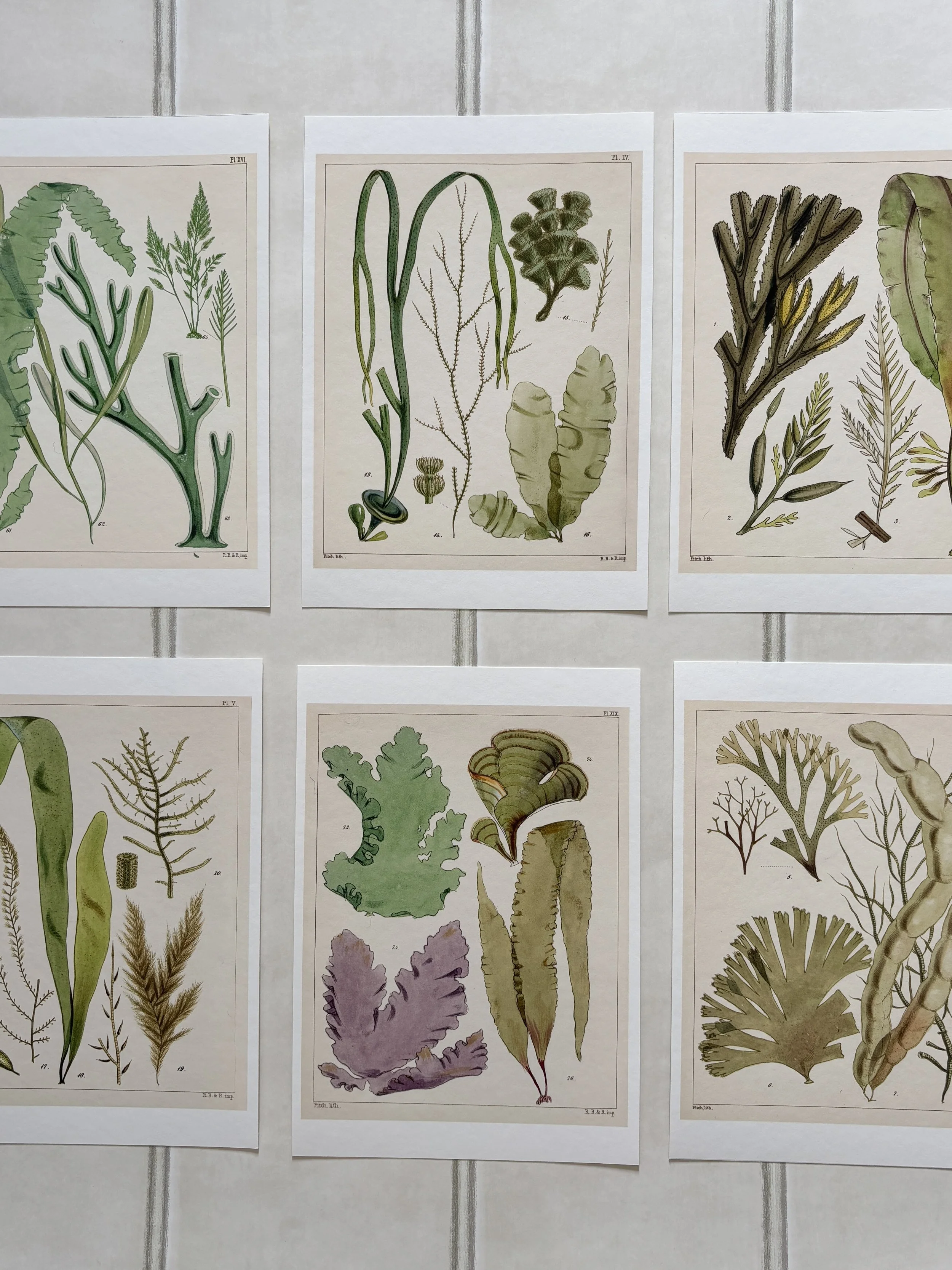 The backgrounds of all of the floral prints have been standardised to a warm off white colour with tones of grey and brown. This way, they can be hung as a set without any discrepancies in background colour. The backgrounds of all of the seaweed prints have also been standardised to a light off-white colour with sepia tones so that they too can be hung as a collection.